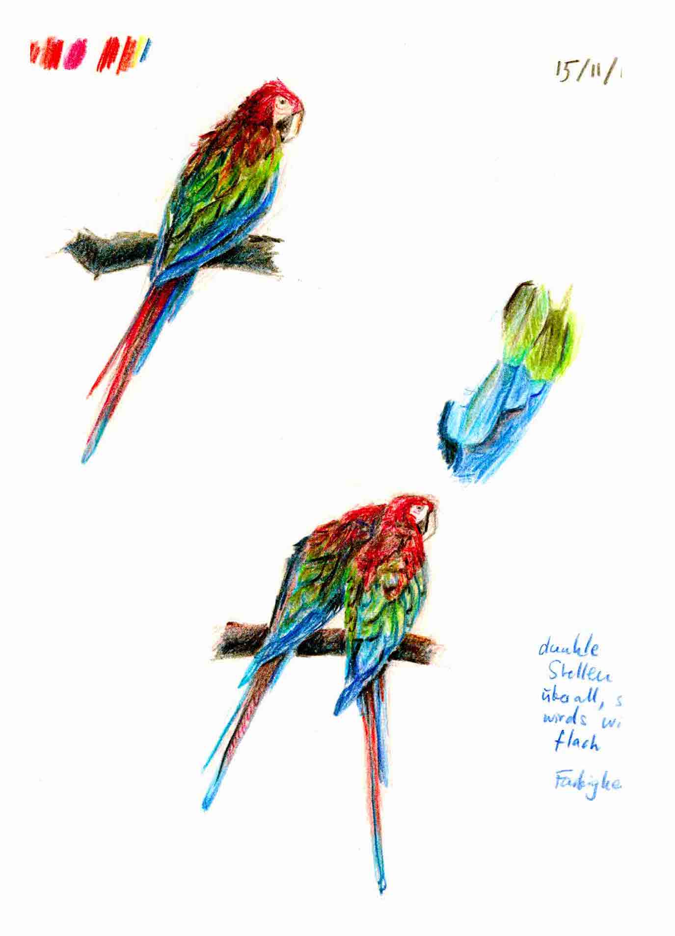 Skizziert im Zoo, Bleistift, Farbstift, Aquarell, A5-A4.